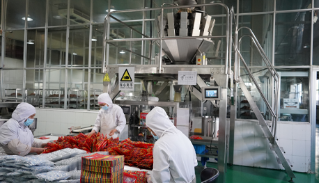 炒制牛肉制品的組合烘干箱、給袋式真空包裝機、機器人碼垛機等一系列具有開創(chuàng)性的設(shè)備